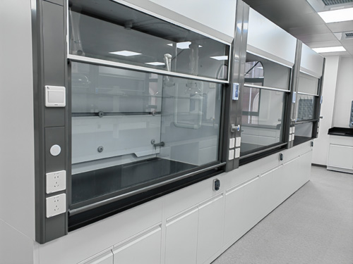 (1)上半部櫥柜柜門:采多層形式,外膜為鋼殼,表層為科學試驗室專用箱耐熱堿6mm厚抗倍特板,具備著地下室防潮濕、防內彎、抗突破等耐防腐蝕性;就需求在工作臺面做出洗滌的通風工作柜,于外襯板考慮抗潮和抗防腐蝕要.護殼與內襯間隔層,可擴到水、電、混合氣體污水管機系統,并可確認櫥柜柜門密封性與安全防護網。
